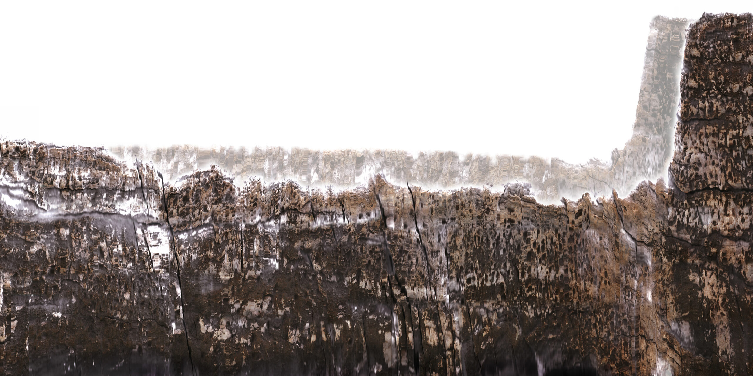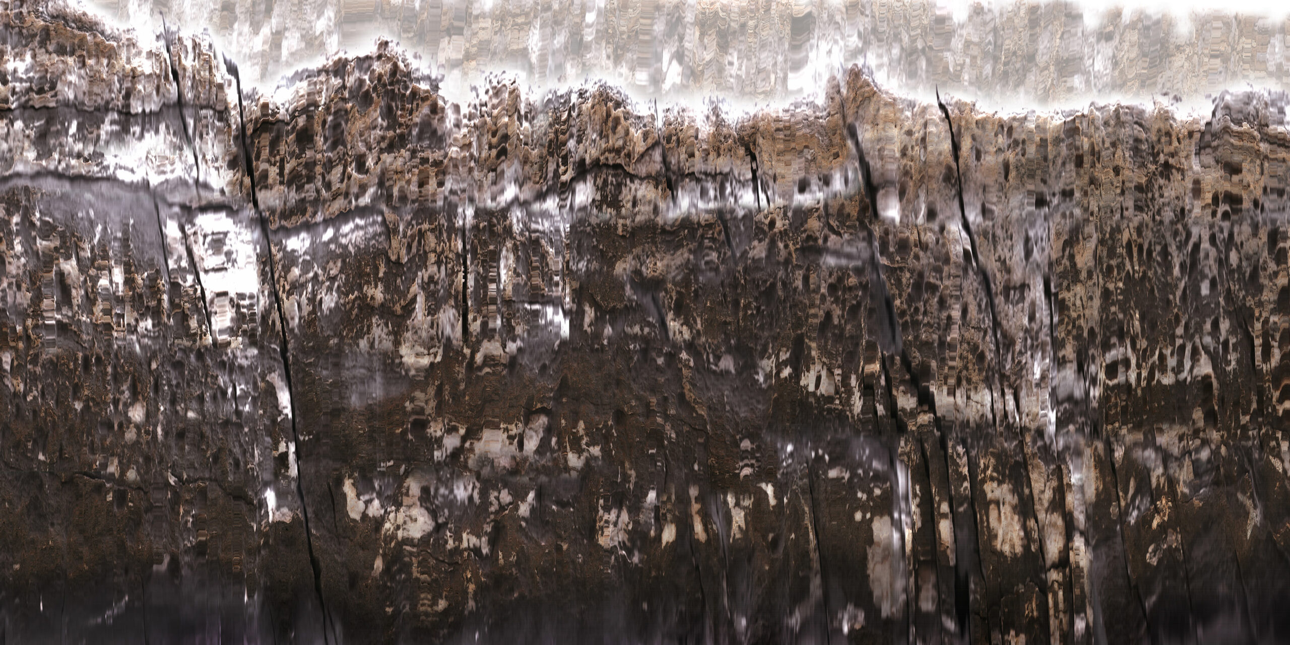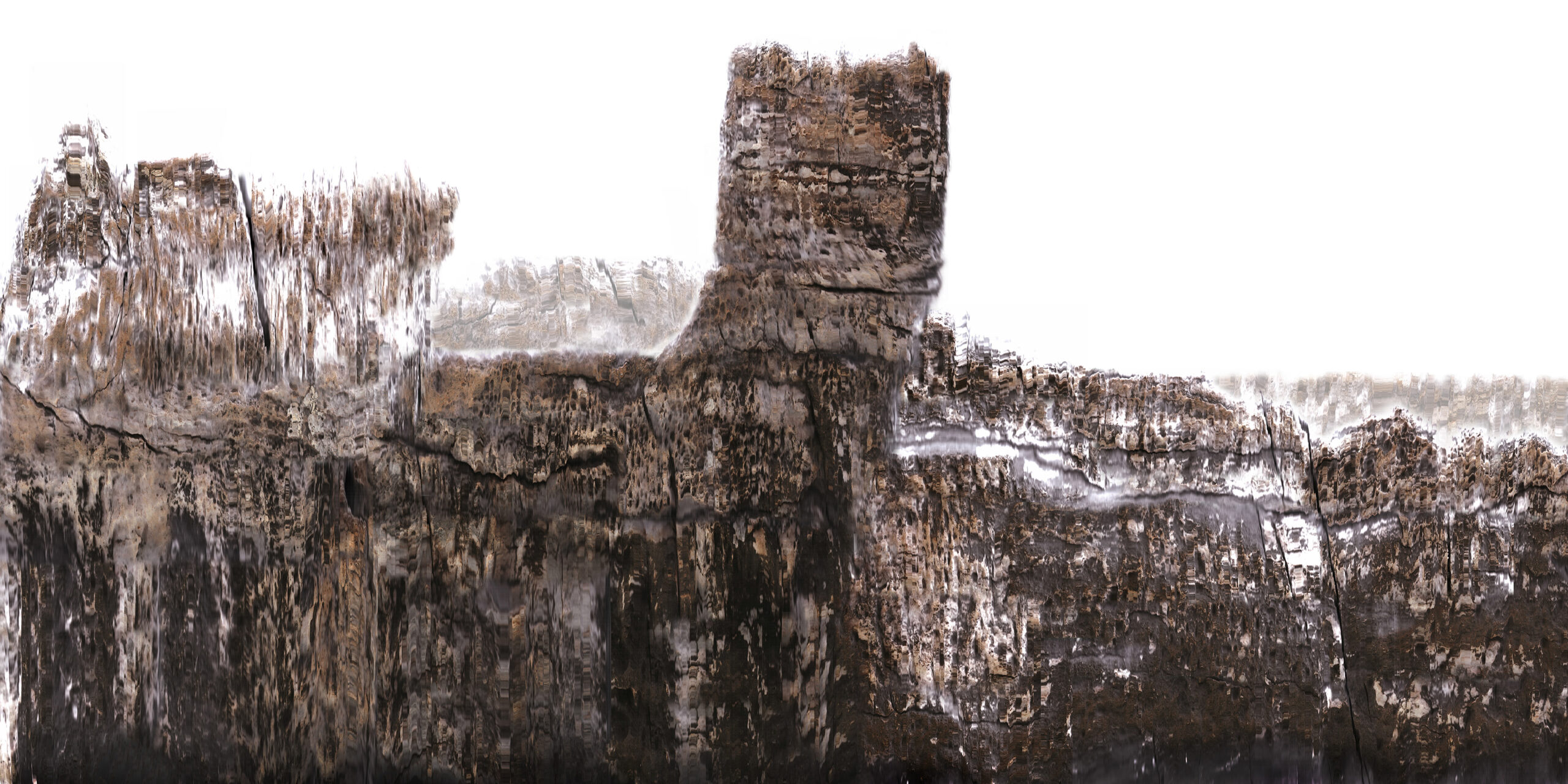 Later, I assembled the numerous individual pieces into an overall picture. My irregular movements affected the speed of the scanning process, while the rough surface of the kouros additionally influenced the device and transferred itself into a unique visual world. It is precisely these disturbances and irritations that have become the pictorial part of my encounter with this sculpture. Far from any ‘photographic accuracy,’ a landscape in stone emerged.